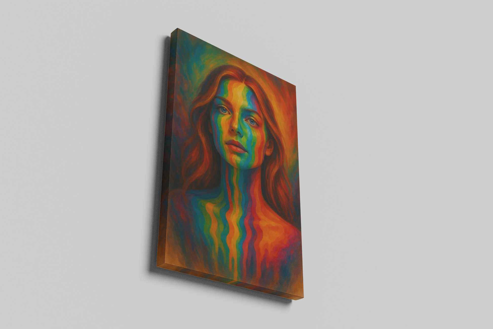 Cromatica intensă, bazată pe roșu, portocaliu, verde, albastru și violet, simbolizează unitatea dintre emoție și lumină, transformând tabloul într-un manifest vizual al vitalității și unicității umane. Perfect pentru spații moderne, el devine rapid punctul central al oricărui decor.